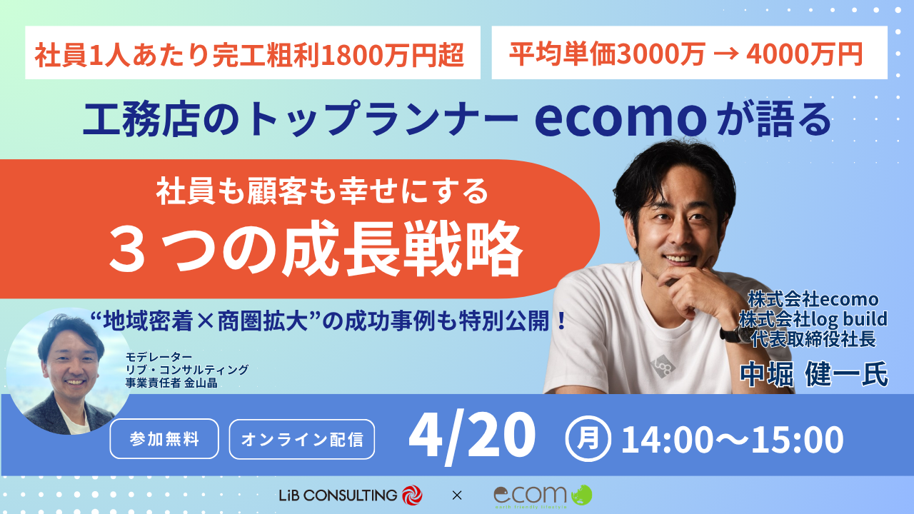 神奈川の工務店ecomo様は、その課題を乗り越え、成長を続けています。